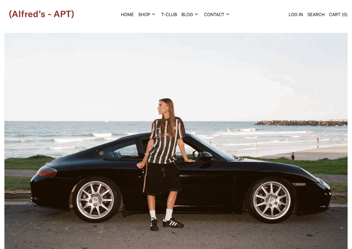 As a contemporary brand, Alfred's has used a pretty minimal and brustalist theme which is not particularly optimised for customers like other mass clothing brands such as True Classic.