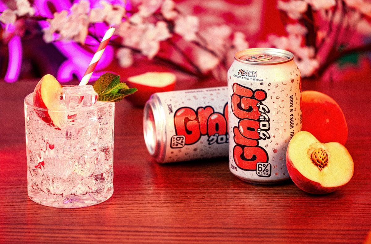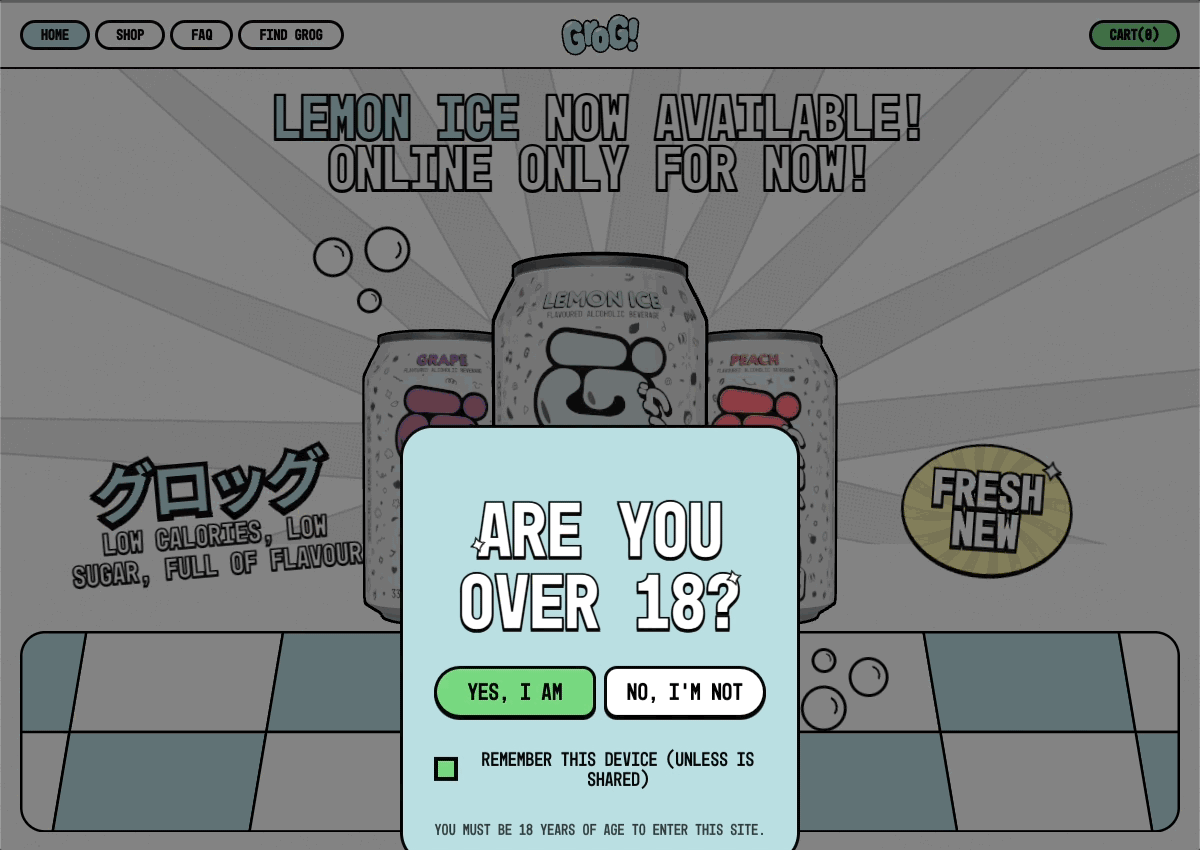 The brand juxtaposes the Aussie slang term 'Grog' with a cute, pastel, Japanese-inspired design direction.