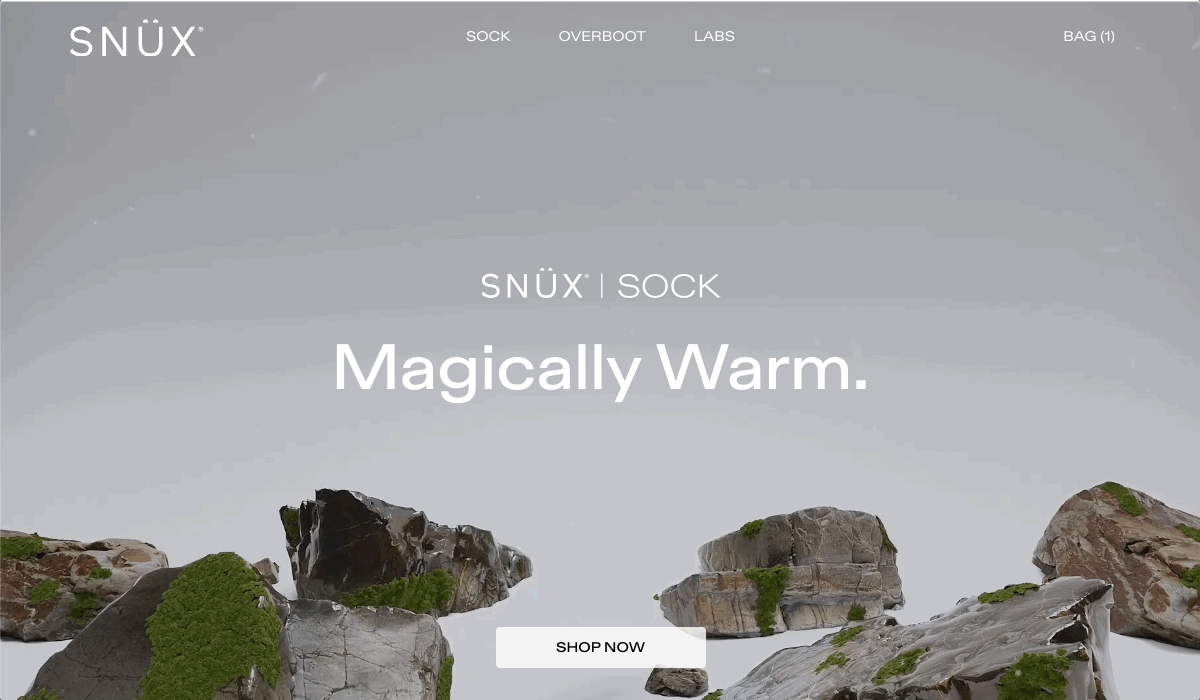 Snüx has done a great job positioning themselves as high tech adventure wear - beautiful 3D renders and monochromatic visuals bring us into their lab, emphasising the details like their thermal fabric and temperature range.